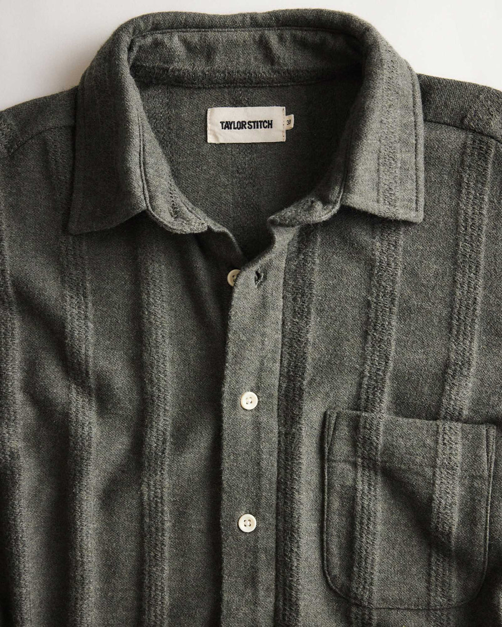 Taylor Stitch - Short Sleeve California in Heather Olive Pointelle Stripe