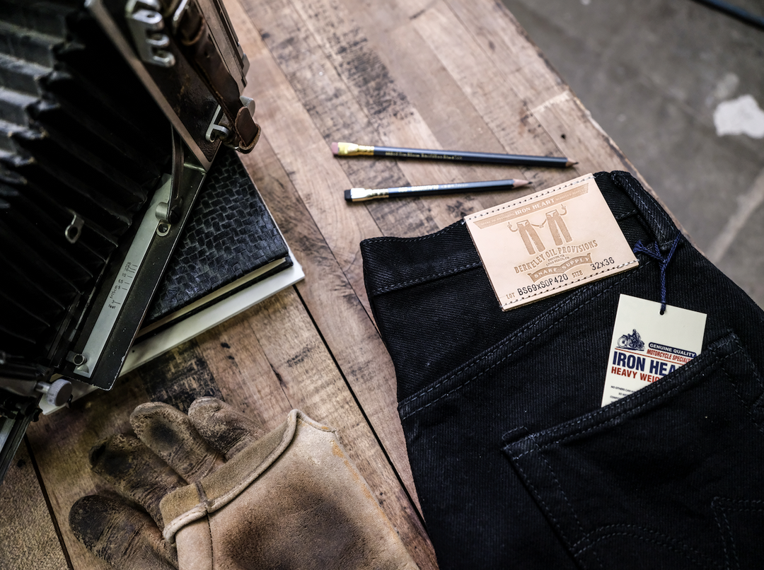 Iron Heart was originally made for bikers, and even today that focus guides design and construction of the clothing. Confident that the clothes appeal to a variety of owners, Haraki-san conceives of them to be worn by riders and for their preferences. Iron Heart garments are in the main made from heavyweight fabrics, designed to be durable, and to some extent protective for motor bikers. Iron Heart clothing is classic in materials and styling, using mostly flannels, denim and chambrays for shirts, and basing jackets on time tested military or riding favourites. Some designs – for example the 25oz XHS (extra heavy selvedge) denim jeans - are at the limit of what can actually be woven and sewn: “over-engineered is our starting point.”.