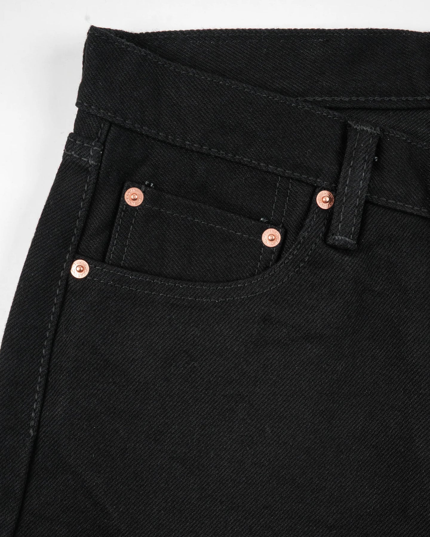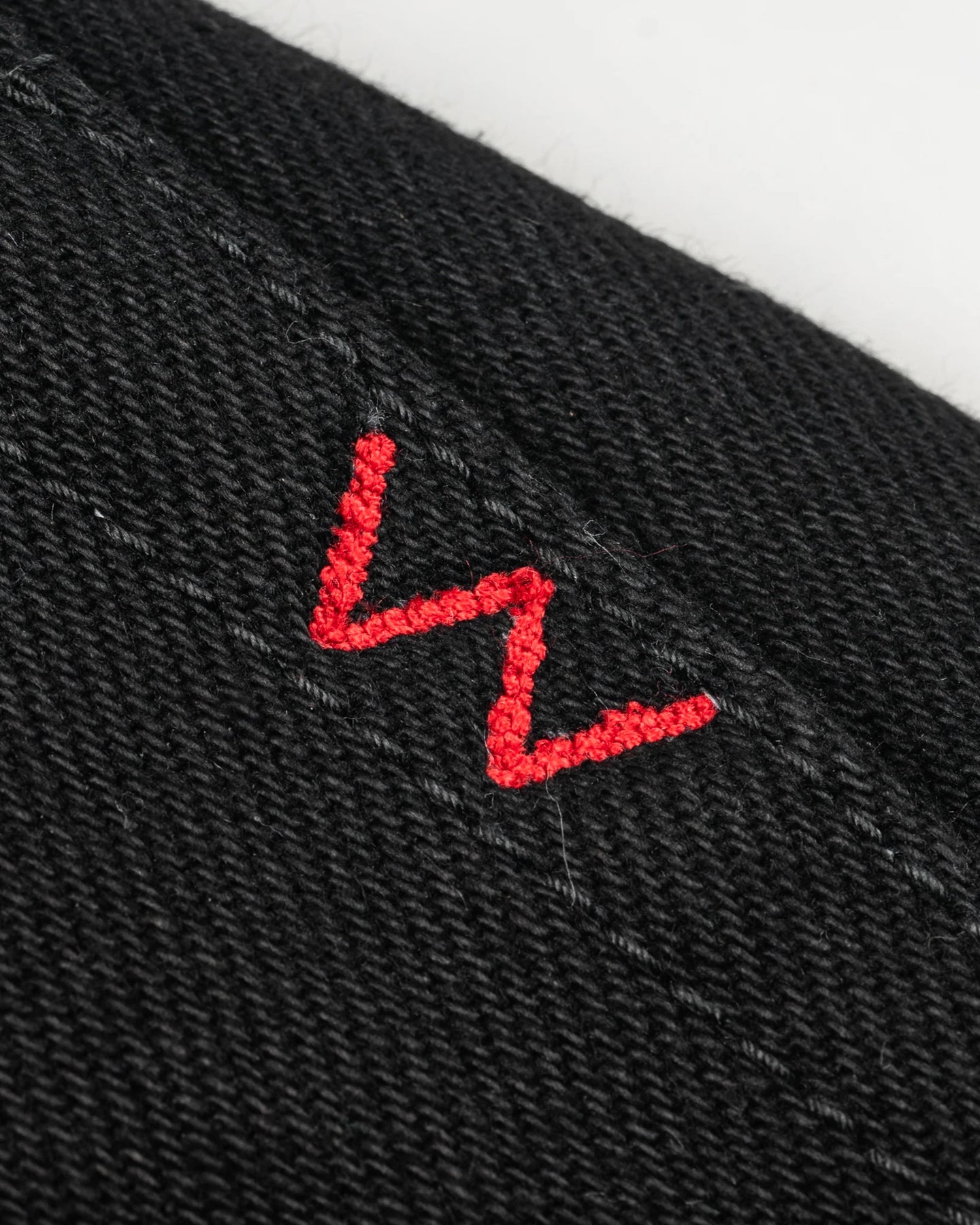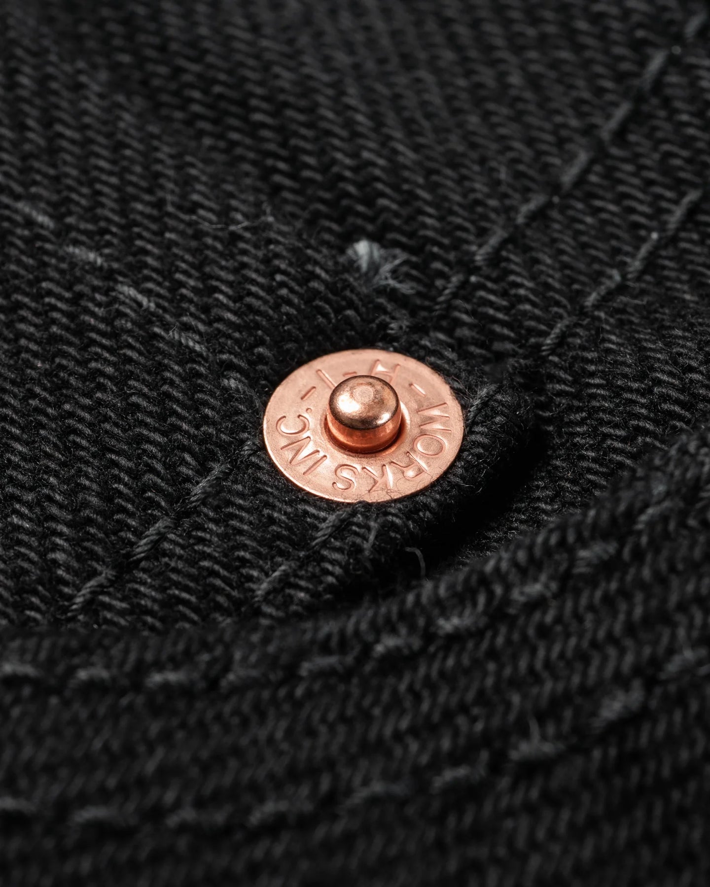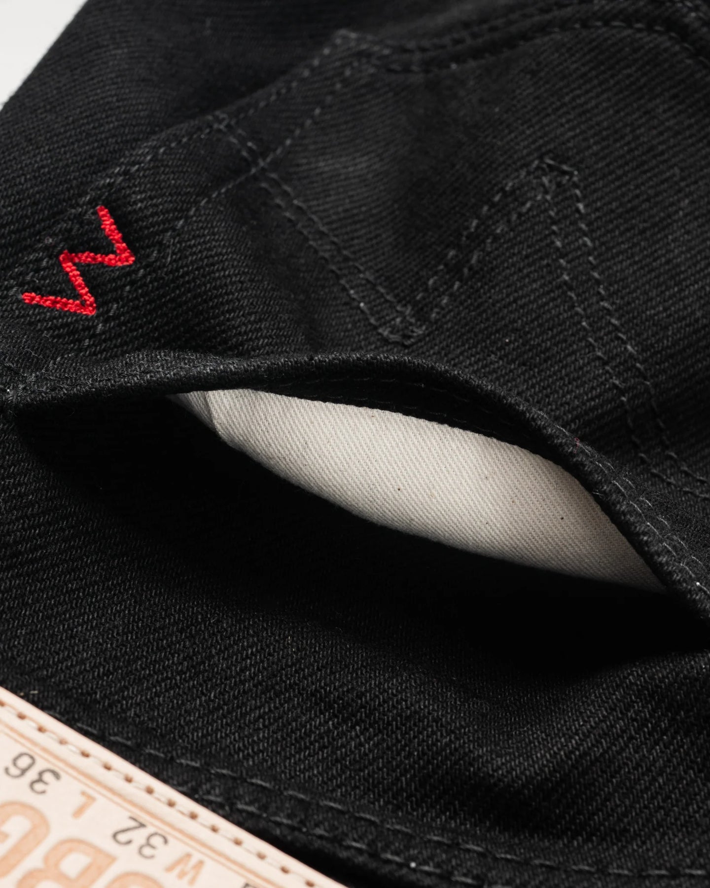 • 21oz sulphur rope dyed black warp, reactive dyed black weft Japanese selvedge denim