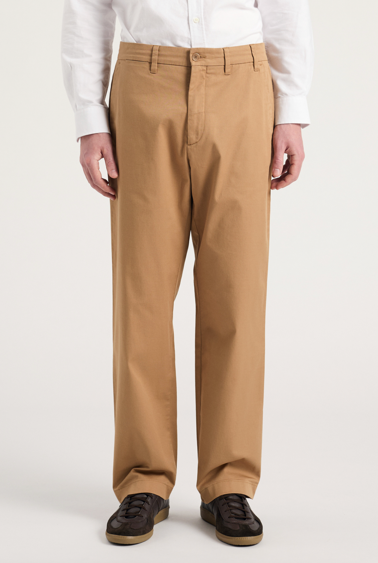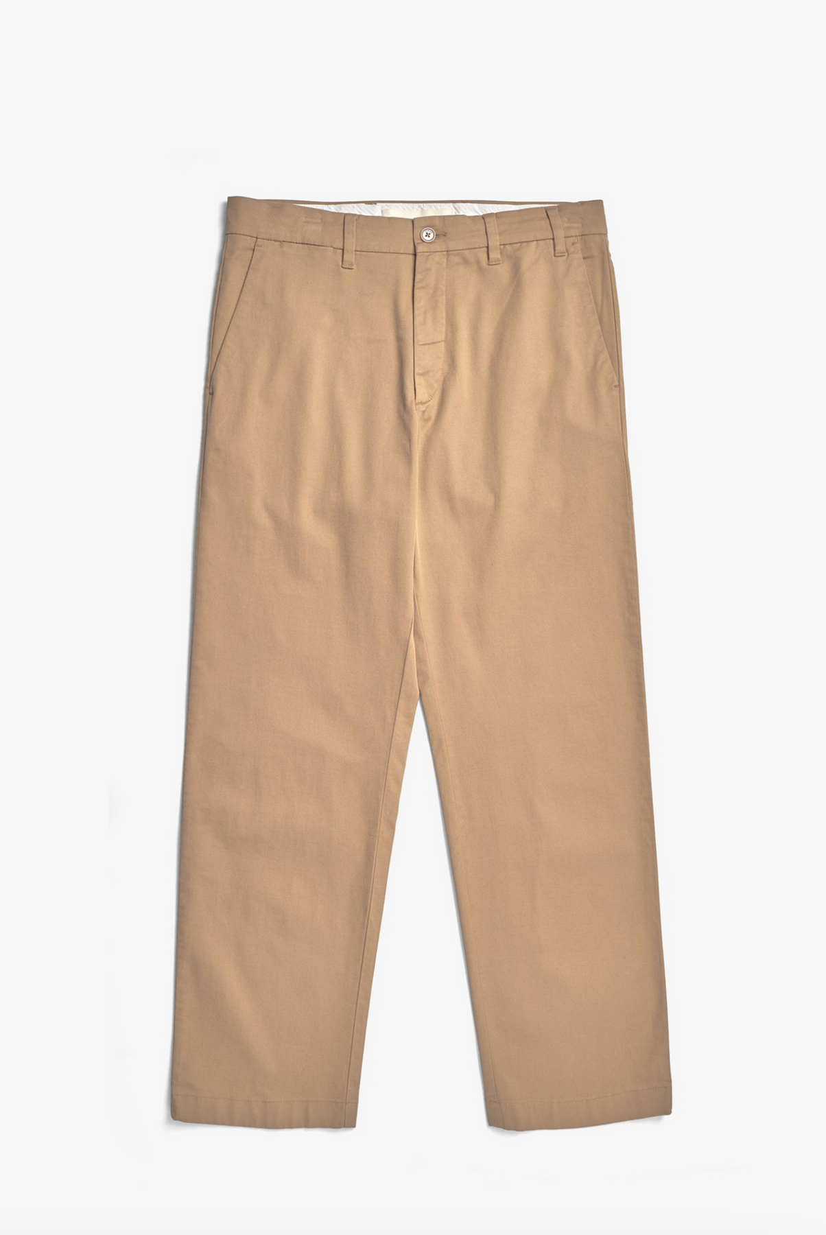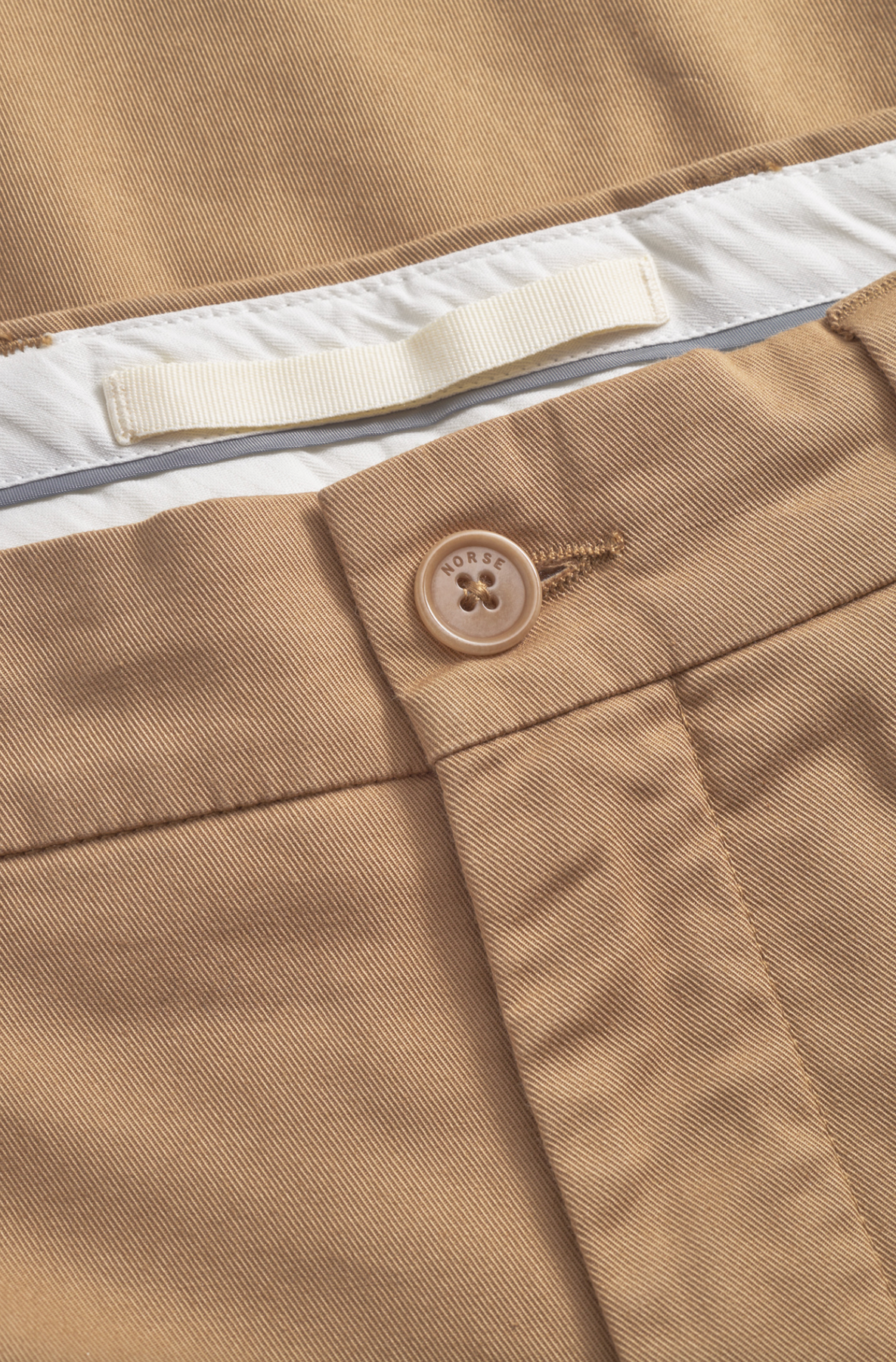 The Norse Standard Wide Chino is made from a compact and clean Italian stretch twill, featuring a mid-rise and wide leg, offering a relaxed fit. It features refined internal details, front slant pockets, back welt pockets and a branded tab at the back.
