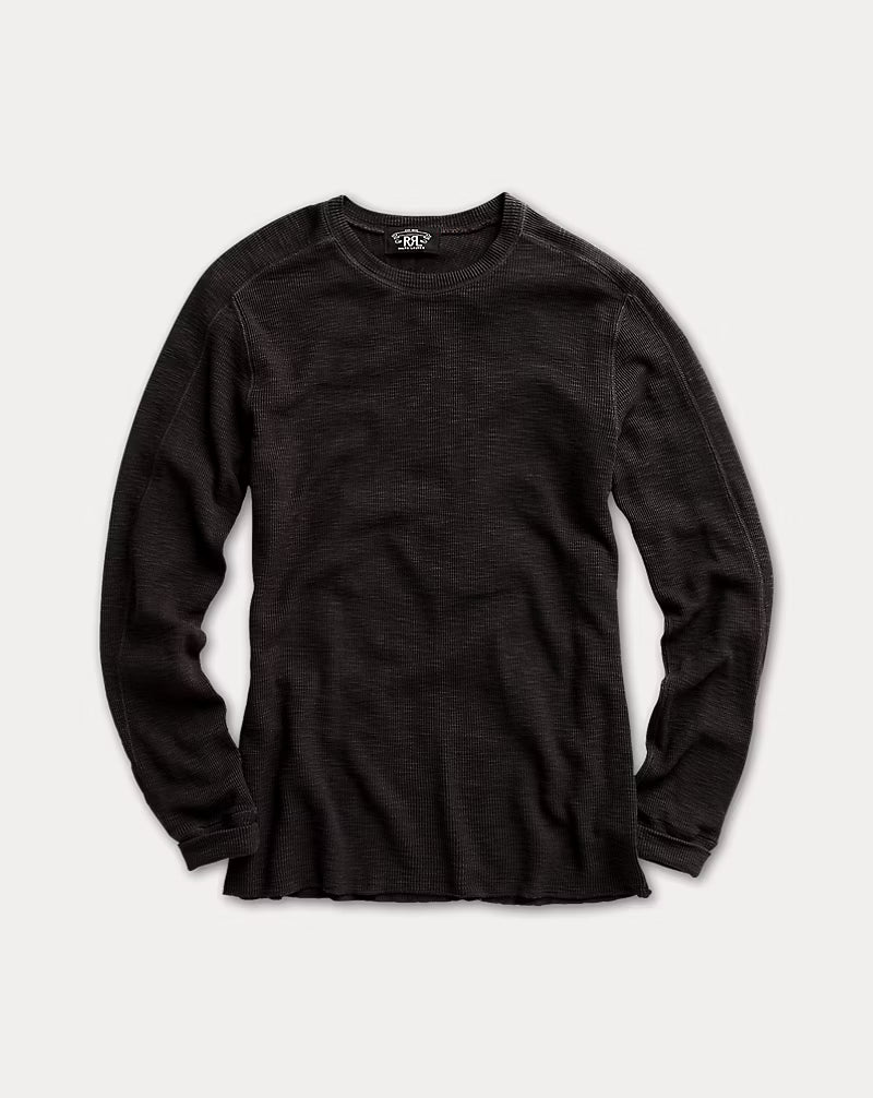 RRL Waffle-Knit Crewneck - Faded Black Canvas