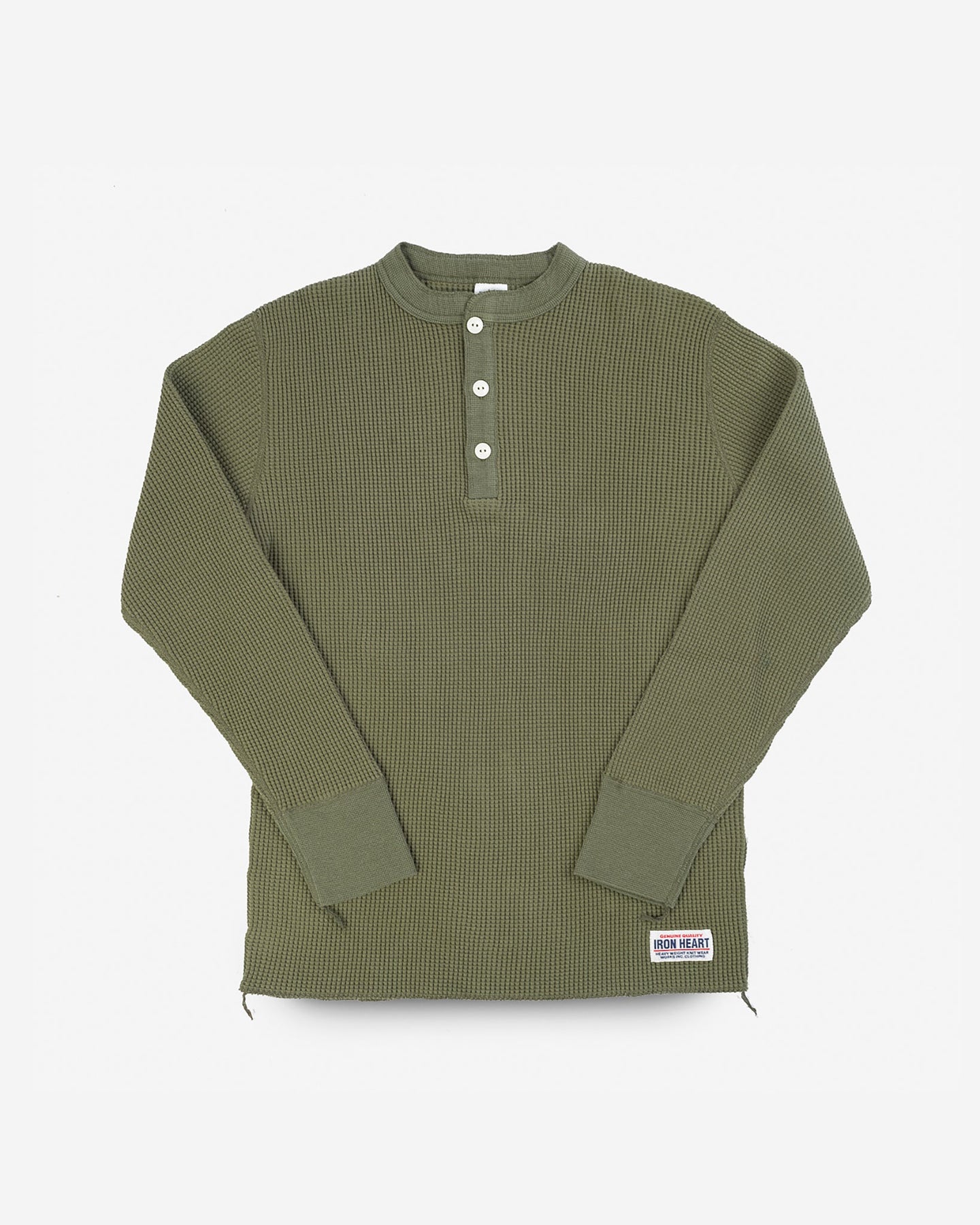 Iron Heart - Waffle Knit Long Sleeved Thermal Henley - Olive