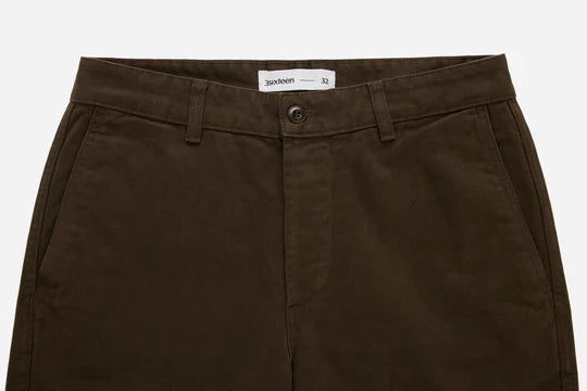 3sixteen chose a heavyweight chino fabric with a pronounced twill weave that is structured yet drapes well. After sewing, the pants are garment dyed and rinsed for a broken in feel. The pant is finished with double needle flat fell seams throughout for extra durability and tonal dyed corozo buttons.