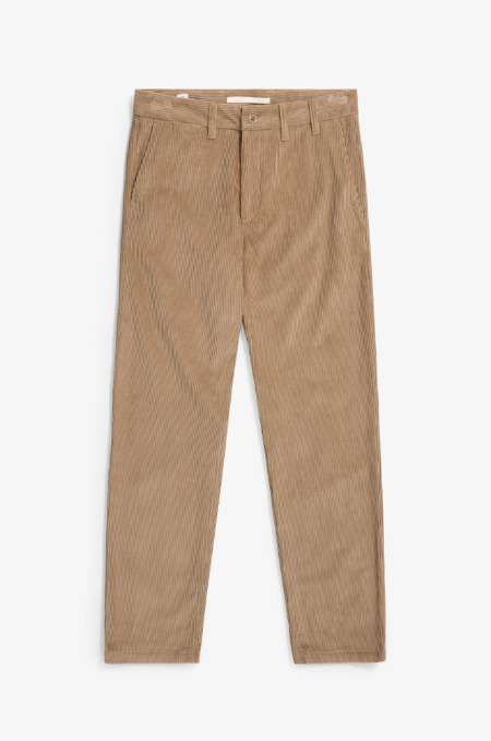 A regular fitting pant, cut from an Italian 8 wale corduroy cloth. This pant has mid-rise and straight leg, and features a zip fly and internal button bearer.